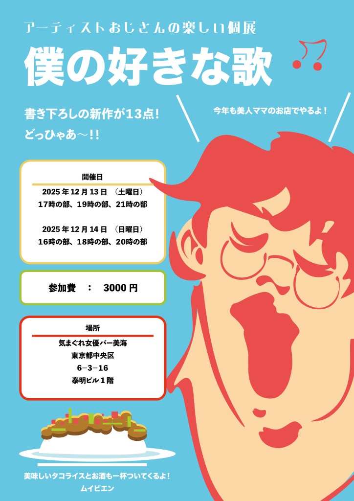 そんな画家アーティストの子が来週、この小さなバーを利用して