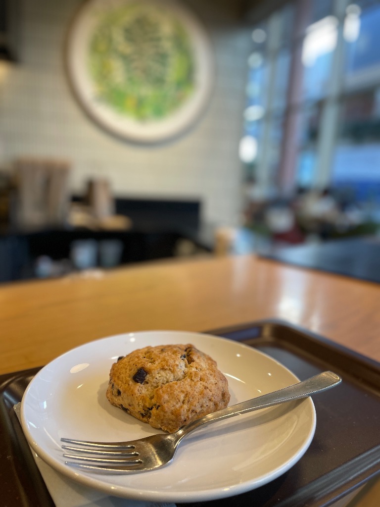 かたちが変わってしまったチョコチャンクスコーンの写真です。